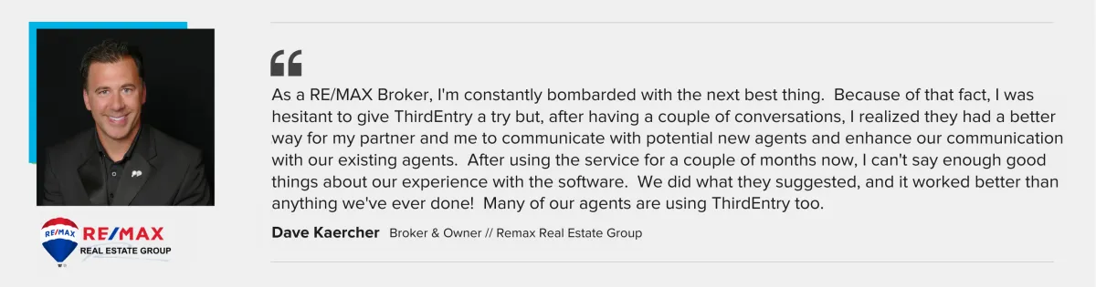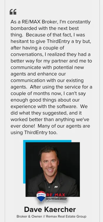 ThirdEntry is a complete game-changer. This CRM has really helped us ramp our recruiting efforts and it's also helped our agents ramp up their businesses. Thanks Jeff and Dalton!